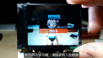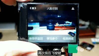 作为强迫症,非常enjoy这种严丝合缝的感觉。 有兴致的话,还可以参考 硬件连接引脚对应关系如下表 连线示意图 二哈认主接下来让二哈认识下几位小主 参考动图,飞梭键有三个方向可以操作 下面演示下识别多个人脸的操作步骤。 通过飞梭键,在设置菜单中,打开“学习多个”选项
