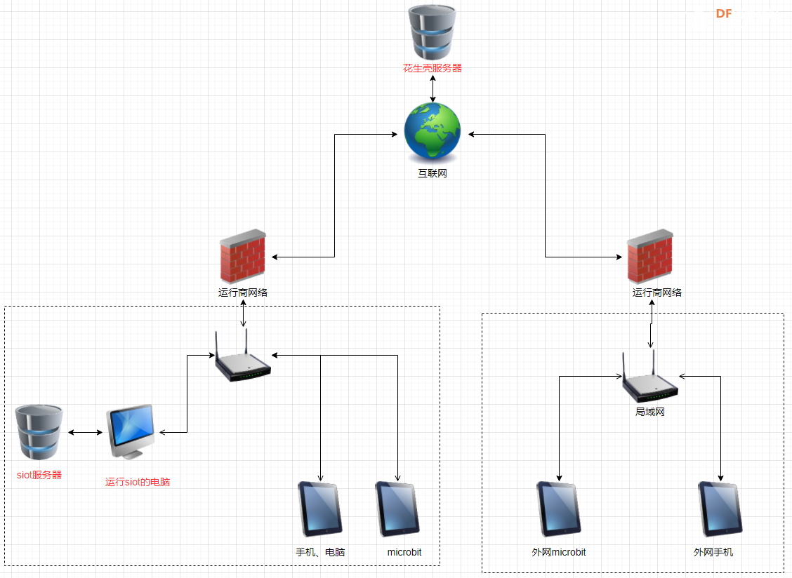 因此:图中右侧的microbit或者手机想访问左边网络里面的SIoT服务器就访问不到。